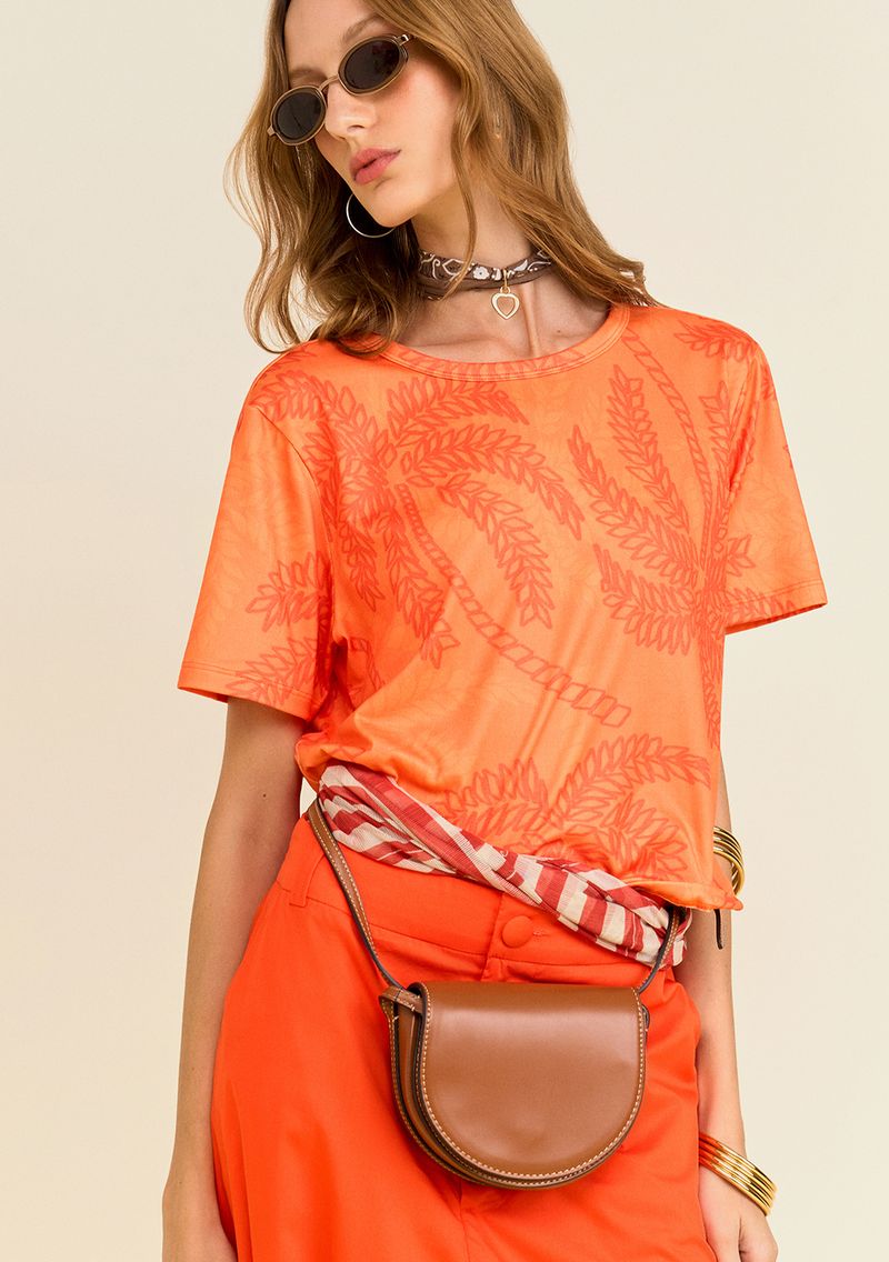 Camiseta Zinco Solta Decote Careca Manga Curta Padrão Laranja