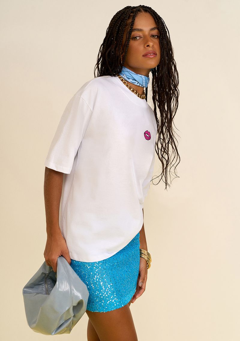Descubra a Camiseta Zinco Solta Decote Careca Manga Curta Padrão Off White, uma peça essencial da coleção 'Solstício de Verão'. Com um design solto e confortável, confeccionada em 100% algodão, esta camiseta oferece suavidade e leveza para o seu dia a dia ou ocasiões especiais. Perfeita para compor looks casuais e elegantes, combina harmoniosamente com jeans para um estilo despojado ou com saias para um visual mais sofisticado. Sinta-se confiante e autêntica, expressando sua personalidade vibrante com essa peça cheia de atitude. Complemente com acessórios discretos para um visual diurno ou aposte em peças mais ousadas para a noite.