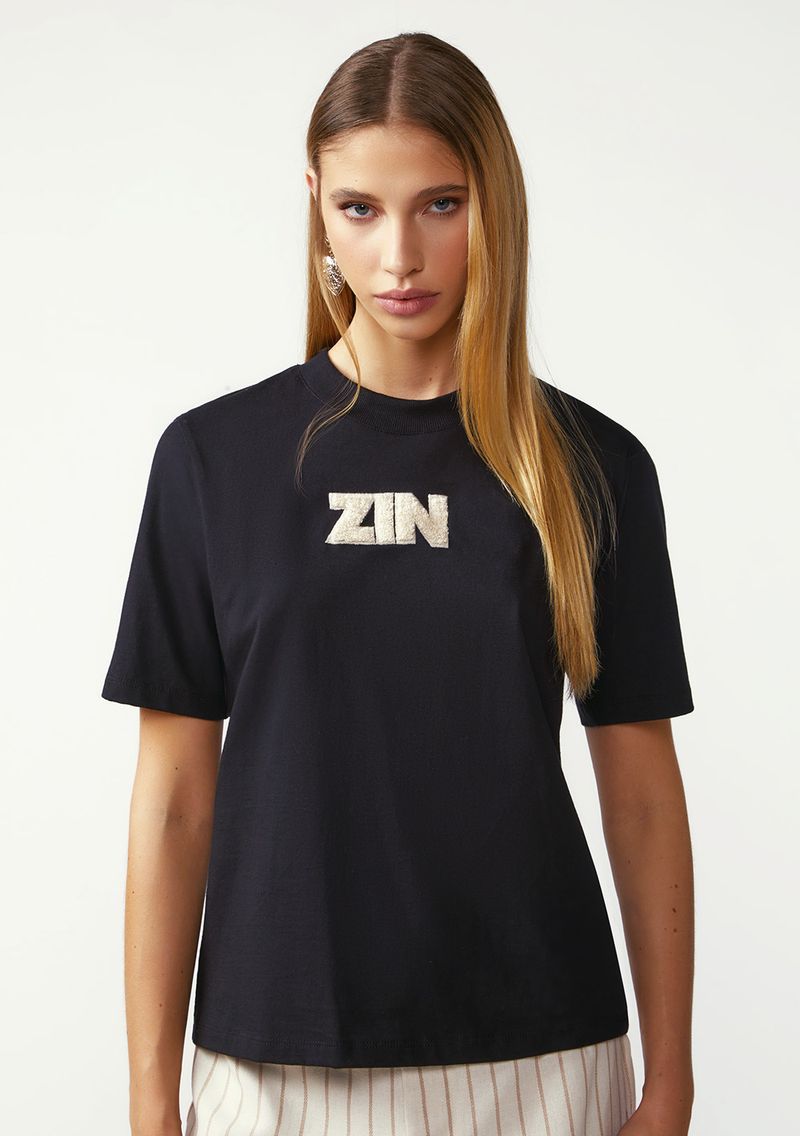 Camiseta Zinco Solta Decote Careca Manga Curta Padrão Preto