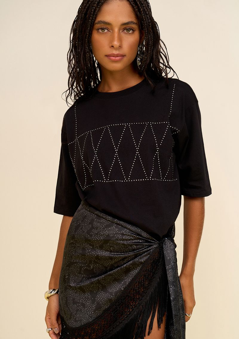 Camiseta Zinco Solta Decote Careca Manga Curta Padrão Preto