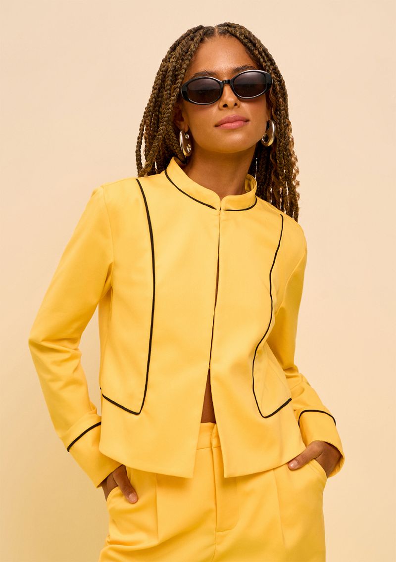 Envolva-se no charme vibrante do Casaco Zinco Solto Manga Longa Padrão Amarelo. Ideal para a mulher jovem e descomplicada, essa peça de alfaiataria é a combinação perfeita de estilo e conforto, destacando-se com sua cor intensa, que celebra a brasilidade. Feito com tecido de qualidade, abraça seu corpo para você se sentir confiante. Combine com jeans e acessórios simples para um look casual ou aposte em uma saia midi para ocasiões mais especiais. Parte da Coleção Aurora, este casaco é um convite para brilhar em qualquer ambiente. Descubra a liberdade de expressão com o toque sofisticado da Zinco e transforme seu guarda-roupa em uma verdadeira declaração de moda.