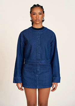 OUTLETRoupasCasacos e JaquetasJaqueta Zinco Cropped Com Termocolante Jeans
