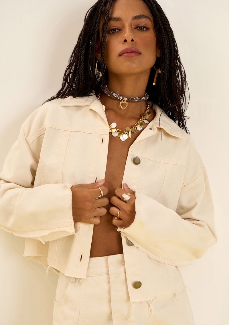 Descubra a Jaqueta Zinco Solta Manga Longa Cropped Off White, uma peça essencial para quem busca estilo e personalidade. Com design cropped e em sarja 100% algodão, ela exala jovialidade e liberdade, perfeita para compor looks casuais ou para festas. Combine com calças de cintura alta e acessórios minimalistas para um visual moderno e descomplicado. A coleção 'O Solstício de Inverno' traz a dualidade da estação com um toque de sofisticação e estilo. Adquira agora e sinta-se confiante e autêntica o dia todo!