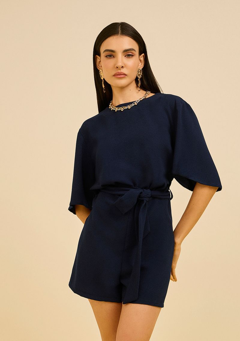 Macacão Zinco Solto Decote Careca Manga Curta Curto Azul