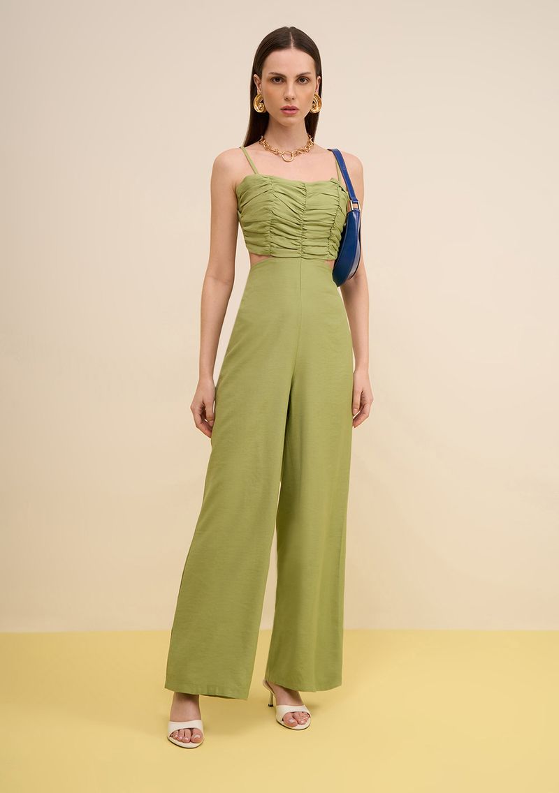 Macacão Zinco Solto Decote Reto Sem Manga Longo Verde