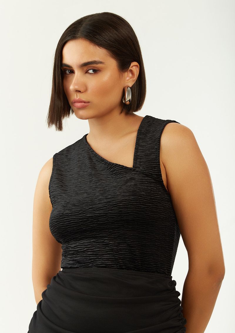 Descubra a Regata Zinco Ajustada Decote V Padrão Preto, uma peça indispensável para o closet feminino. Feita de veludo com 95% de poliéster e 5% de elastano, essa blusa ajustada oferece conforto e estilo em qualquer ocasião. Com decote V sofisticado, é perfeita para compor looks casuais ou de festa. Combine com uma saia midi ou uma calça jeans skinny e finalize com acessórios vibrantes para um visual cheio de atitude. A coleção 'O Solstício de Inverno' celebra a dualidade da estação, trazendo texturas envolventes e cores intensas que refletem a essência da mulher Zinco: jovem, autêntica e inspiradora. Aposte nesta regata e dê um toque de elegância ao seu dia a dia.