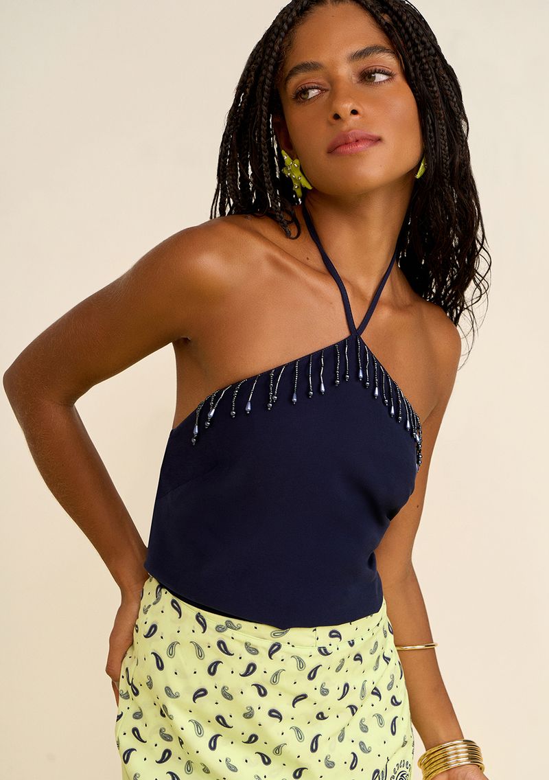 OUTLETRoupasBlusasRegata Zinco Solta Cava Francesa Alongada Azul