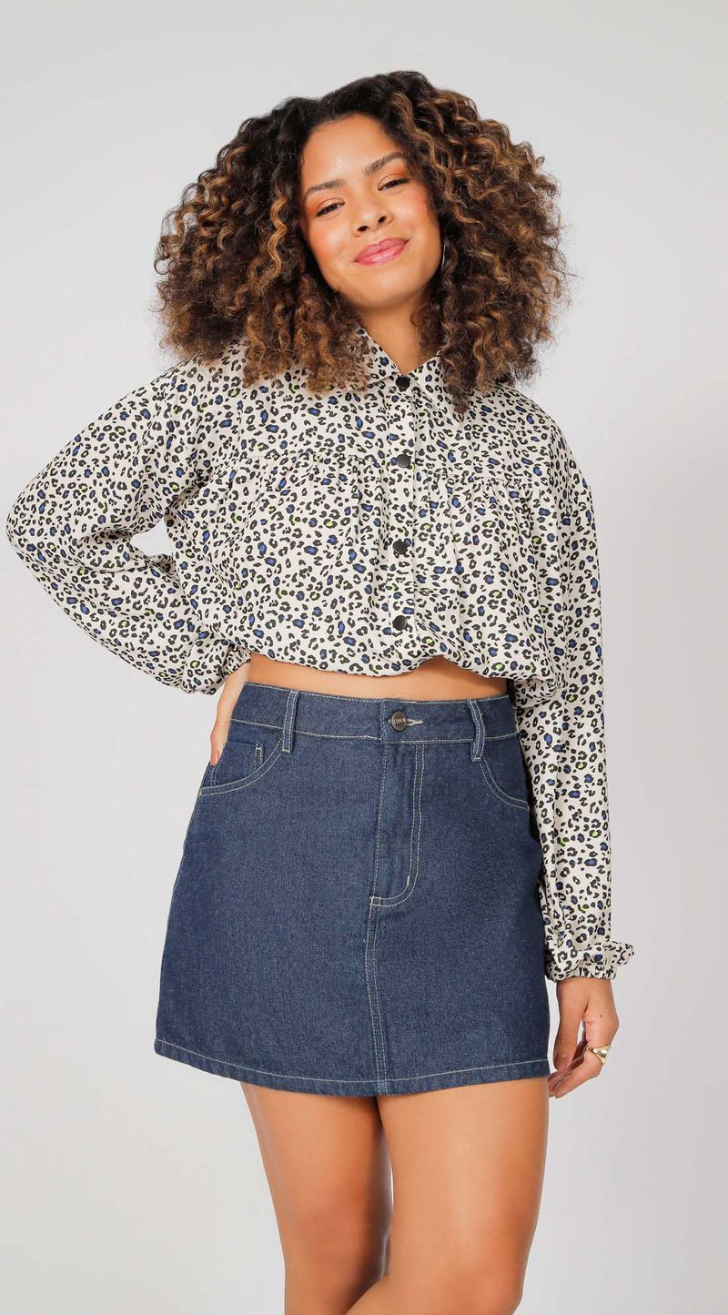 Saia Jeans Escuro five pockets. Alta qualidade nos detalhes nas costuras e no efeitos sombreados fazem desse jeans um item diferenciado. As Saias são responsáveis por trazer toda feminilidade às produções e o jeans deixa seu look com um ar mais moderno e descolado