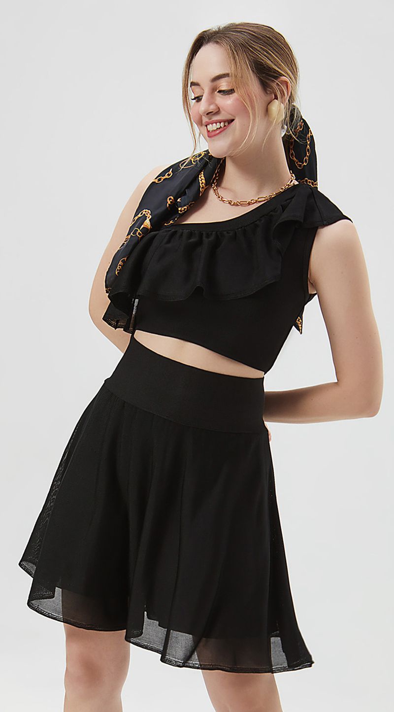 OUTLETRoupasSaiasSaia Zinco Curta Godê Detalhe Elástico Preto