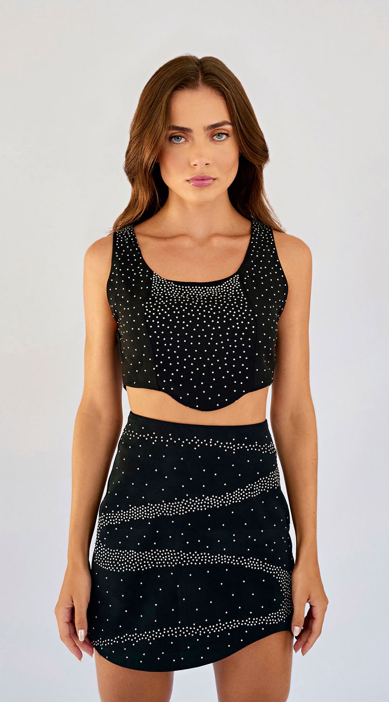 Saia Zinco Curta Linha A Barra Assimétrica Preto