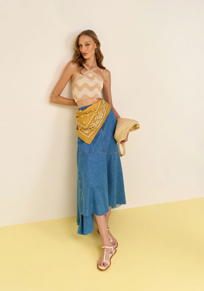 OUTLETRoupasSaiasSaia Zinco Evasê Alta Longa Azul