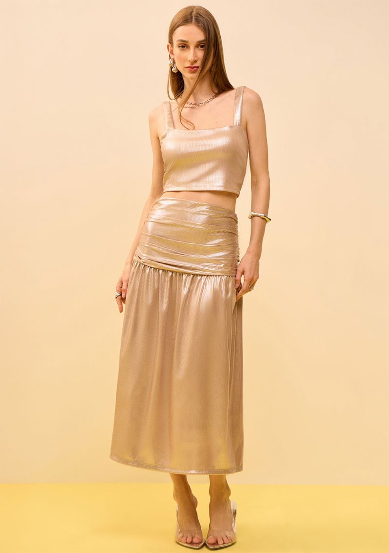 Desperte seu charme com a Saia Zinco Evasê Alta Midi Bege, peça-chave da Coleção Aurora. Com design arrojado e print exclusivo, esta saia é perfeita para se destacar em qualquer evento. Confeccionada em poliéster e elastano, oferece conforto e ajuste perfeito. Combine com uma blusa leve e sandálias para um look sofisticado e vibrante. Sinta-se confiante e autêntica, expressando sua essência em cada movimento.