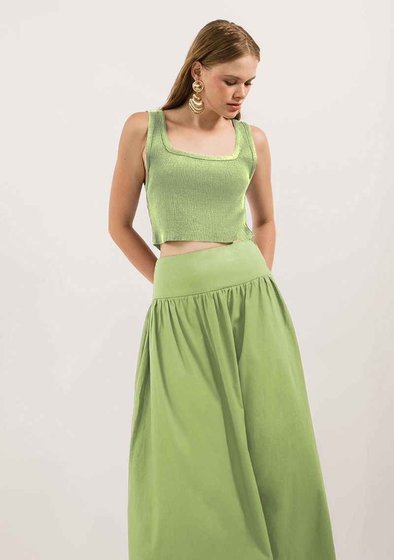 Saia Zinco Longa Evasê Básica Verde Claro