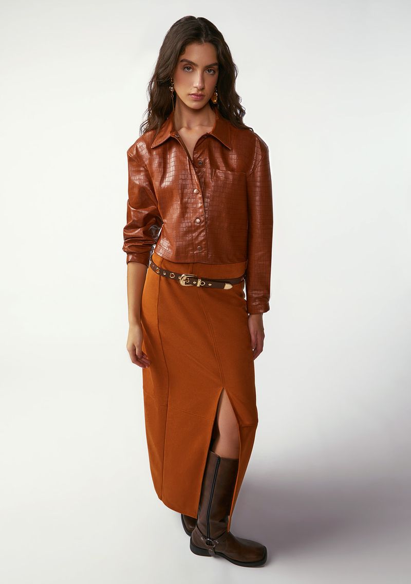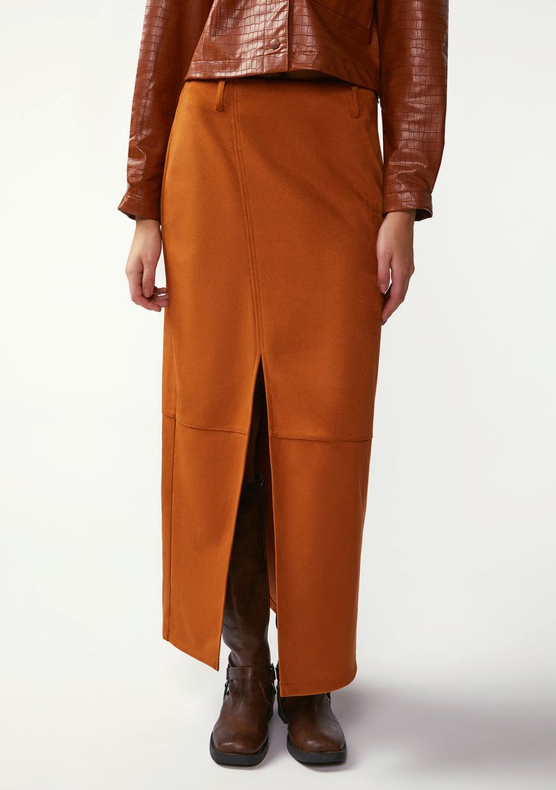 Descubra a elegância descontraída da Saia Zinco Reta Alta Longa Marrom. Feita em suede, com 95% poliéster e 5% elastano, essa peça traz conforto e sofisticação para o seu look. Ideal para eventos ou festas, sua cor terrosa reflete a serenidade do estilo Boho Western. Combine com blusas leves e botas para um visual autêntico e marcante. Sinta-se confiante e destaque-se em qualquer ocasião!