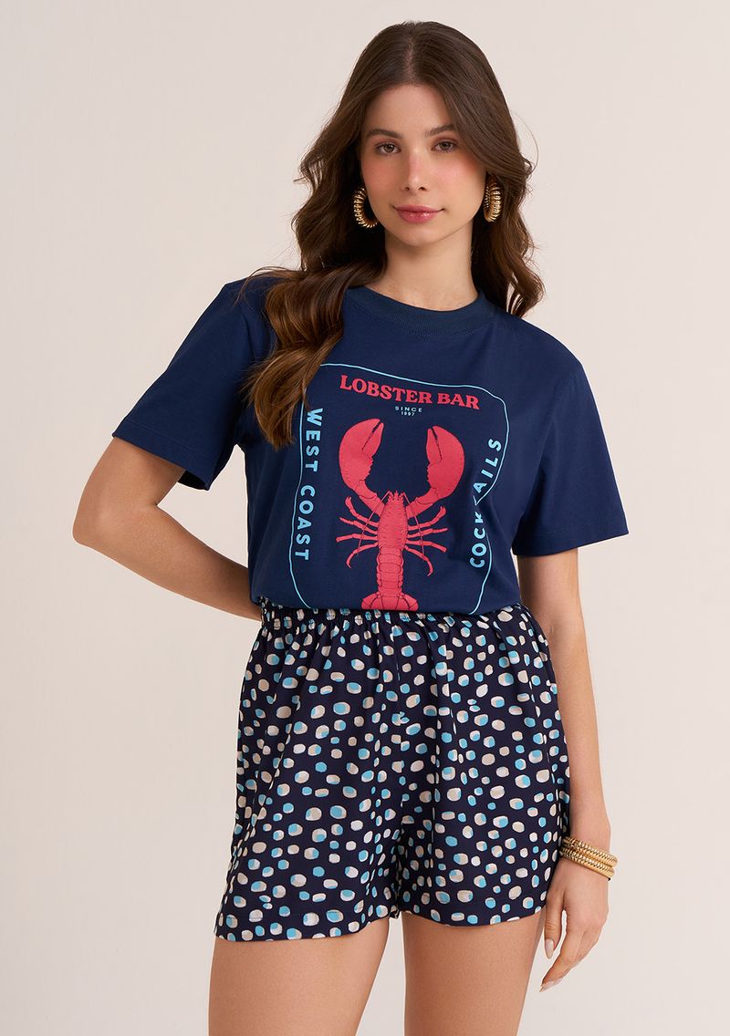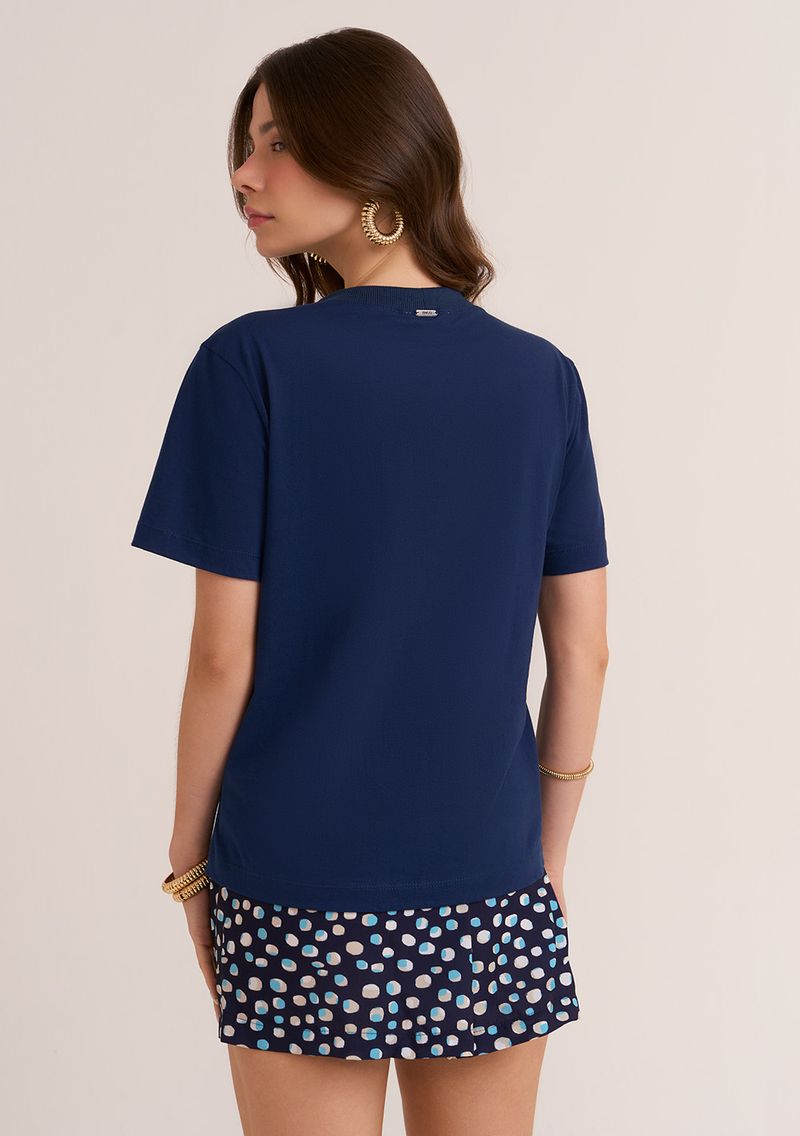 T-Shirt Zinco Decote Redondo Estampa Localizada Azul Marinho