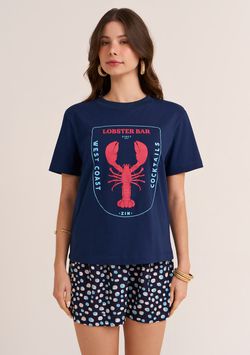 OUTLETRoupasT-shirtsT-Shirt Zinco Decote Redondo Estampa Localizada Azul Marinho