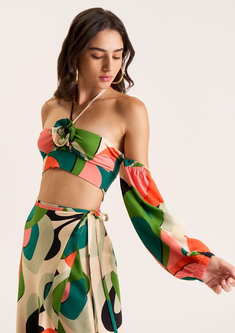 Top Zinco Cropped Manga Removível Com Lastex Verde