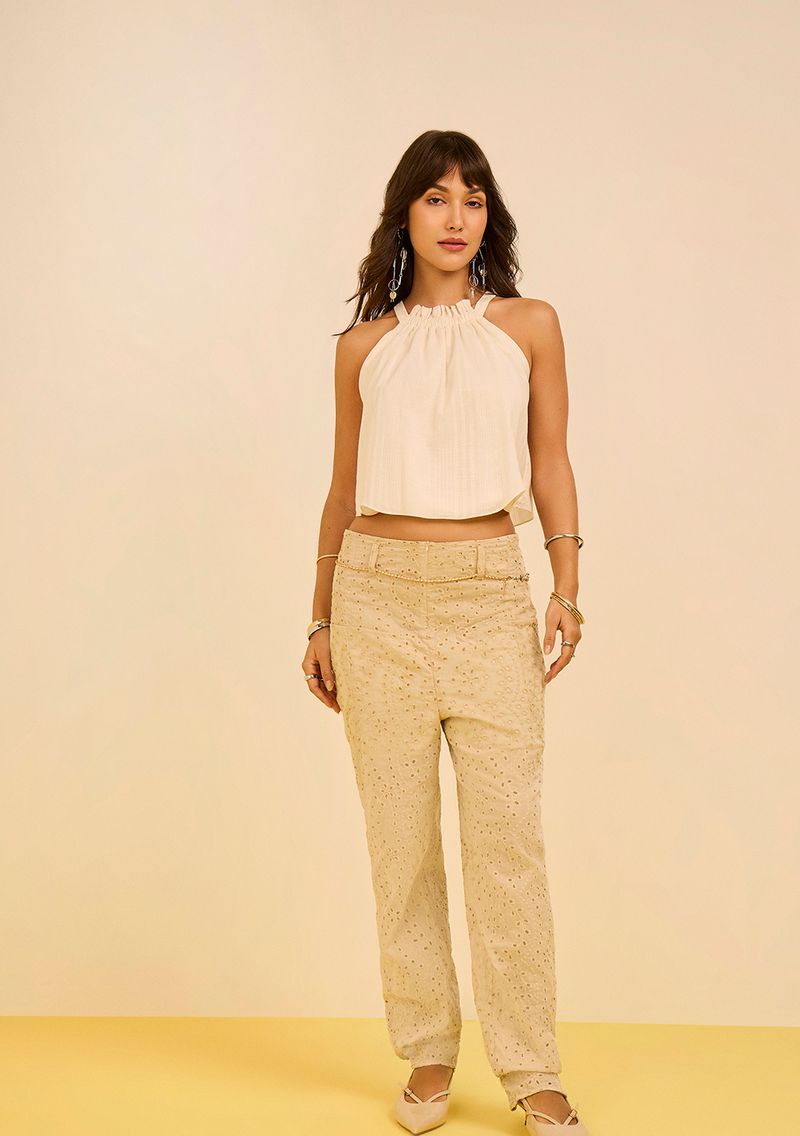 **Top Zinco Decote Careca Alça Larga Off White** Descubra a sofisticação e o frescor do Top Zinco Decote Careca Alça Larga Off White, uma peça essencial para o seu guarda-roupa de primavera/verão. Com um design leve e moderno, este top em tricoline proporciona conforto e estilo, perfeito para compor looks versáteis. Combine com uma saia midi e sandálias para um brunch descontraído ou com jeans e tênis para um passeio casual. O tom off white é ideal para realçar sua beleza natural e se adapta a diversas ocasiões. Confeccionado em 87% algodão e 13% poliéster, o top possui forro 100% poliéster, garantindo leveza e respirabilidade. A coleção El Mar, inspirada na costa latina, traz cores e texturas que refletem a alegria do verão, perfeita para mulheres autênticas que valorizam estilo e conforto. Aposte no Top Zinco e sinta-se confiante e vibrante em cada momento.