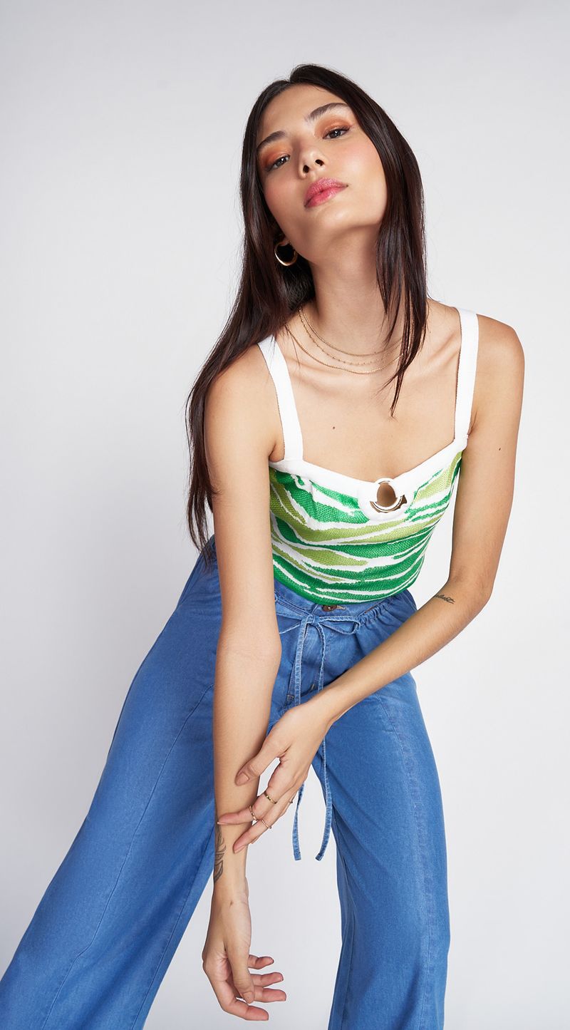 Top Zinco Justo Alça Tricô Verde