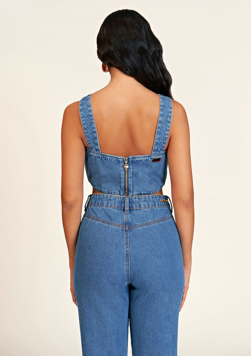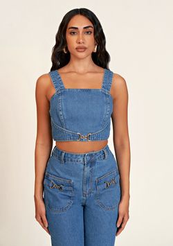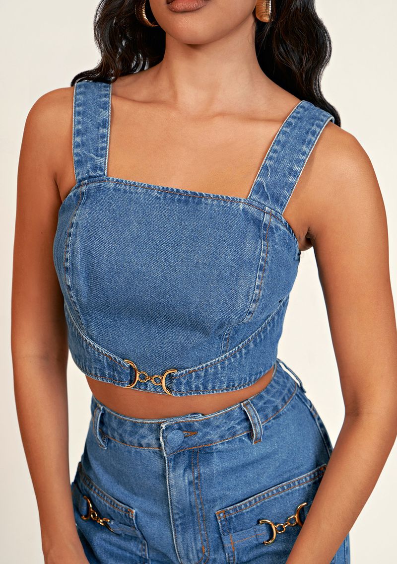OUTLETRoupasBlusasTop Zinco Reto Alça Com Metal Jeans