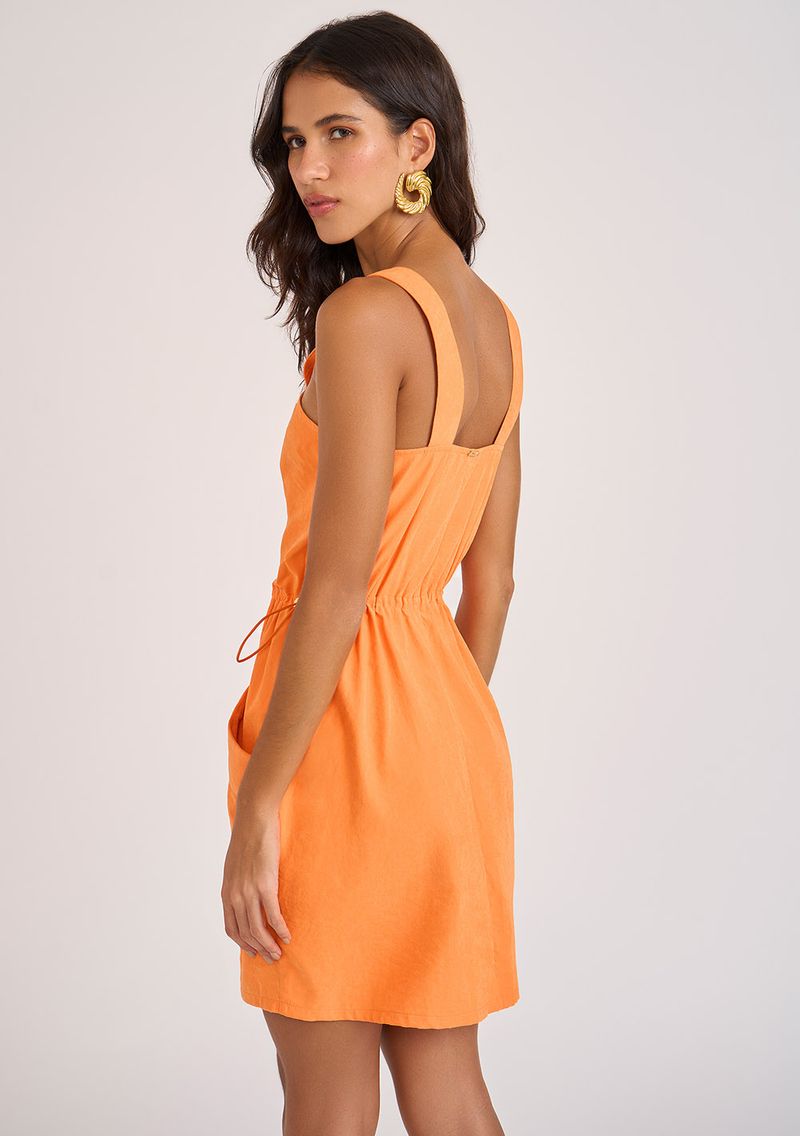 Vestido Zinco Curto Decote Reto Detalhe Cintura Laranja
