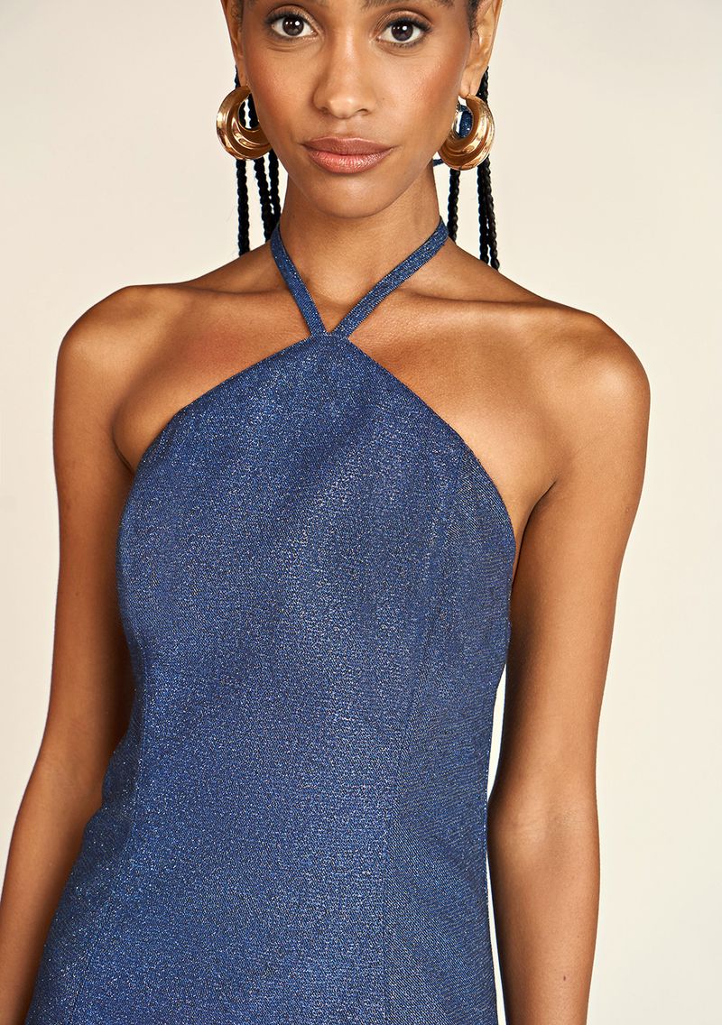 Vestido Zinco Curto Frente Única Amarração Costas Azul Marinho