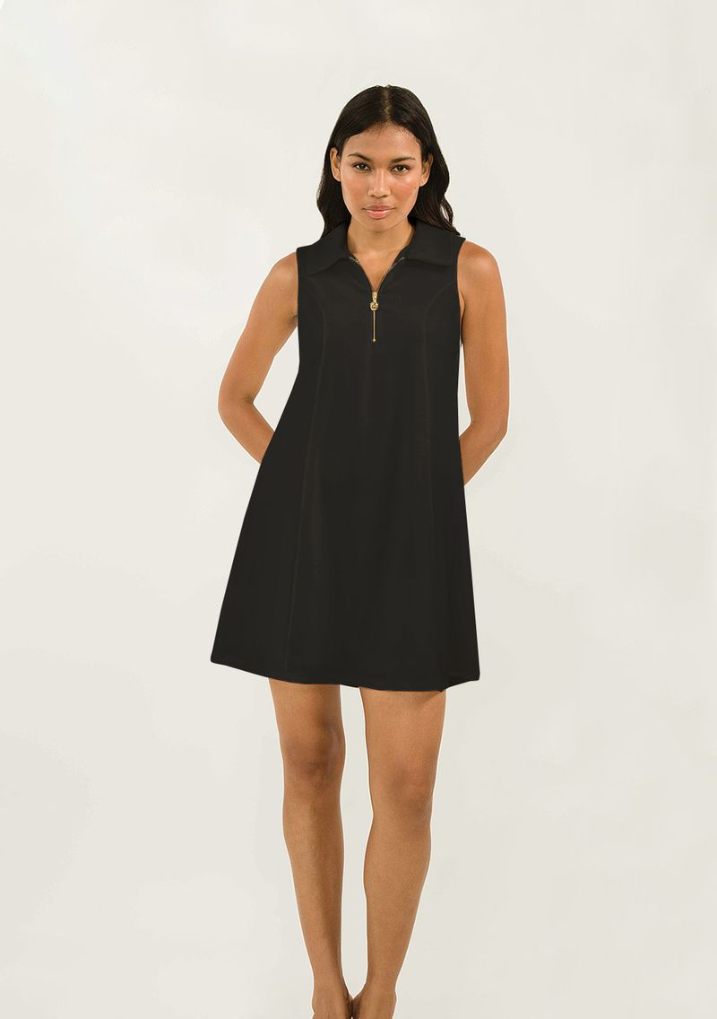 Vestido Zinco Curto Gola Camisa Detalhe Zíper Preto