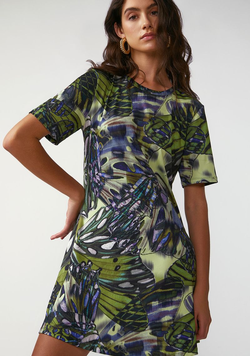 Vestido Zinco Solto Decote Careca Manga Curta Curto Verde