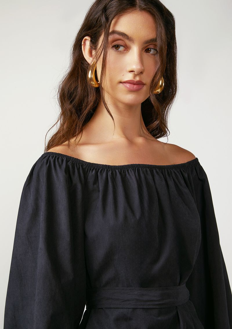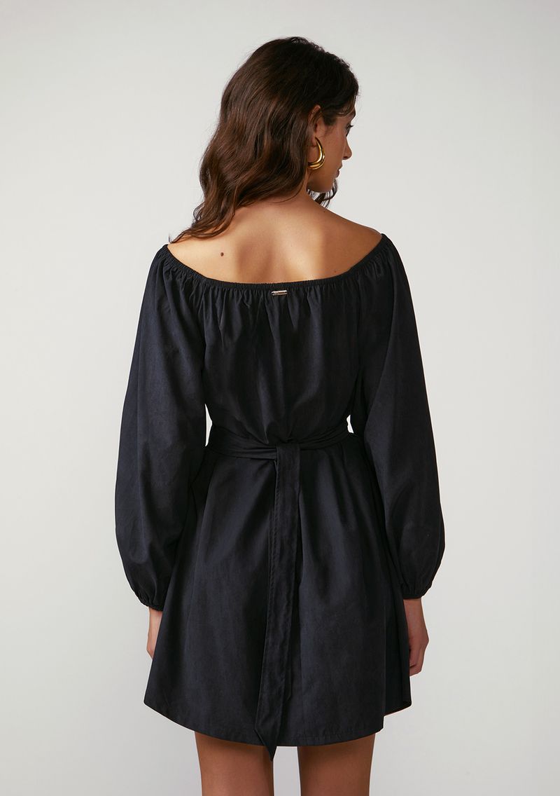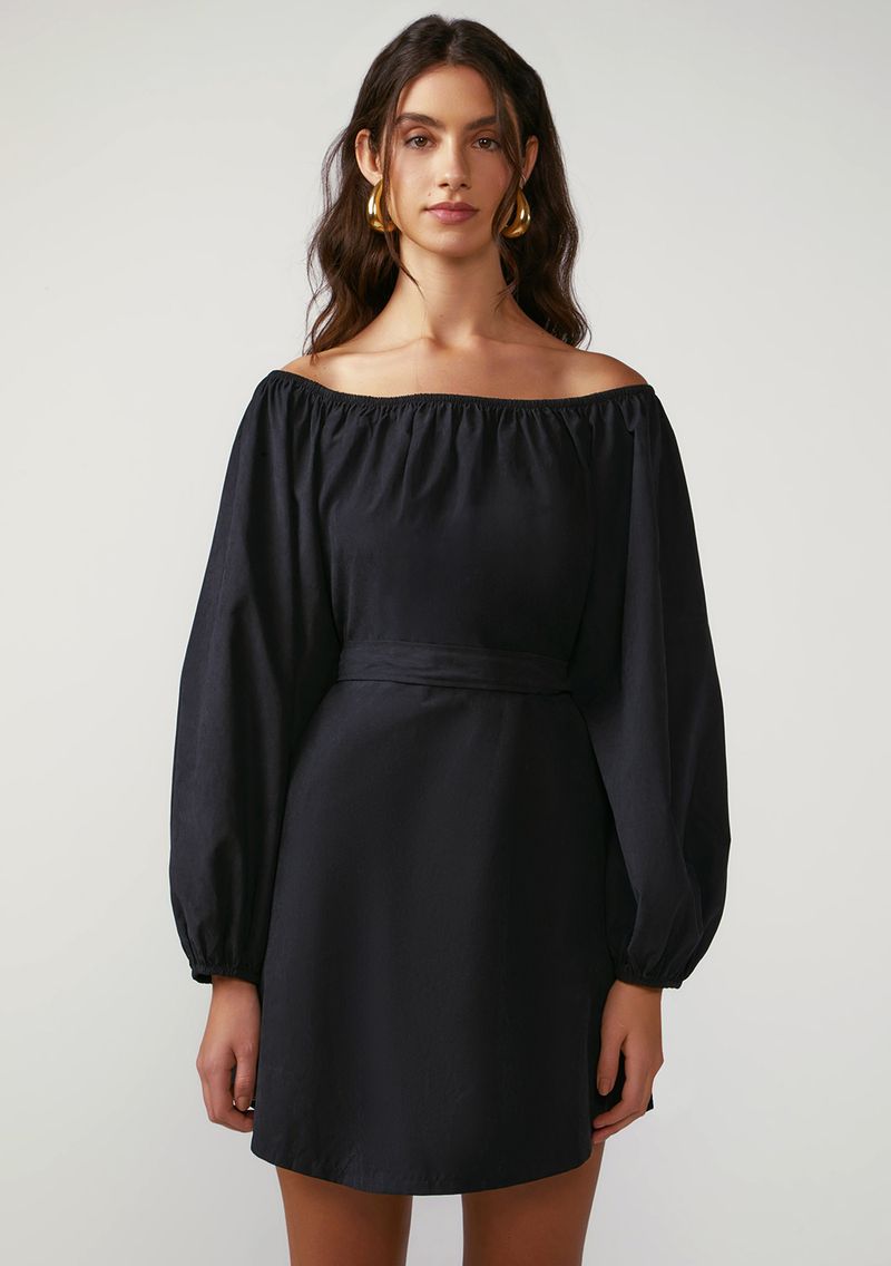 OUTLETRoupasVestidosVestido Zinco Solto Decote Reto Manga Longa Curto Preto